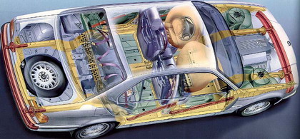 Популярность E38 из года в год так же добавляли вспомогательные электронные системы, по которым она на шаг вперед обгоняла остальных конкурентов. Среди электронной начинки - система динамической стабилизации движения (DSC), адаптивная автоматическая коробка передач (AGS), позволяющая изменять алгоритм переключения передач в зависимости от режимов движения, электронная система управления двигателем ELM.